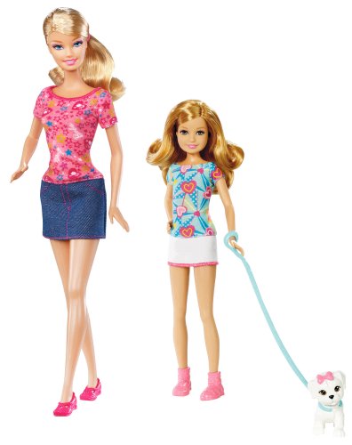 Barbie Sisters Pup Walk Barbie and Stacie Doll 2-Pack: Barbie and Stacie dolls are having fun taking their puppy for a walk. A cute bobble feature really brings the puppy to life. Collect both sets of Barbie Sister 2-Packs, to reunite all 4 sisters together for the ultimate Barbie family outing. Each 2 pack sold separately.