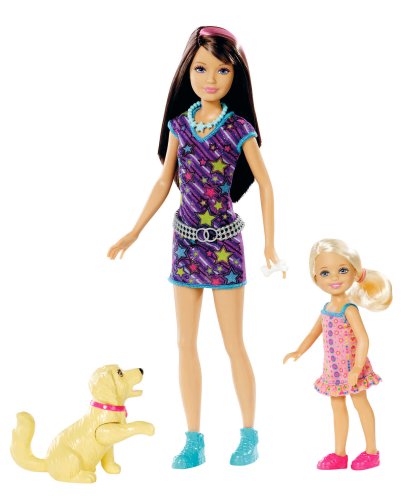 Barbie Sisters Train Taffy Skipper and Chelsea Doll 2-Pack: Skipper and Chelsea dolls are having a fun family moment while Skipper teaches Chelsea how to train their puppy, Taffy. This puppy will learn to shake hands in no time, especially when it's rewarded with a dog bone. Collect both sets of Barbie Sister 2-Packs, to reunite all 4 sisters together for the ultimate Barbie family outing. Each 2 pack sold separately.